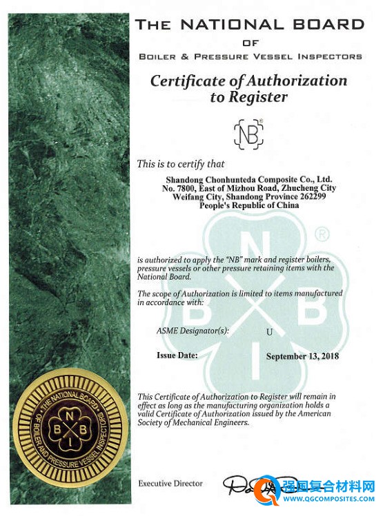 荣誉资质 证书介绍 山东中航泰达复合材料有限公司拥有美国ASME压力容器设计和制造资质,D1/D2类压力容器设备设计、制造及GC3工业压力管道安装、维修资质。公司拥有“潍坊市复合材料轻量化技术工程实验室”和“潍坊市企业技术中心”两个创新研发平台,资质齐全,设备先进,技术力量雄厚,检测手段齐全,具有健全稳定的质保体系。