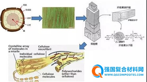 纤维沿着生长方向排列,造成了天然木材的各向异性——木材受压时,每个细胞都相当于一根管柱,在横纹、顺纹两种情况下会表现出不同的抗压能力,导致木材便于加工的同时也容易翘曲。而人工纤维复合材料,以其优异的力学性能,较低的密度等优势,在现代制造业具有宽广的用途。